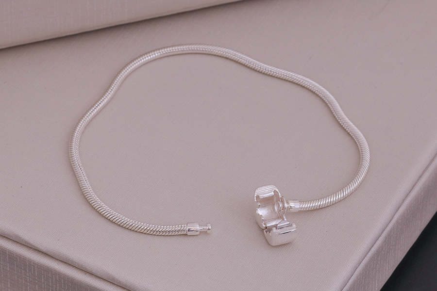 PULSEIRA EM PRATA, BERLOQUEIRA, FECHO LISO, ELO RABO DE RATO 2,30mm ESPESSURA, 16cm COMPRIMENTO